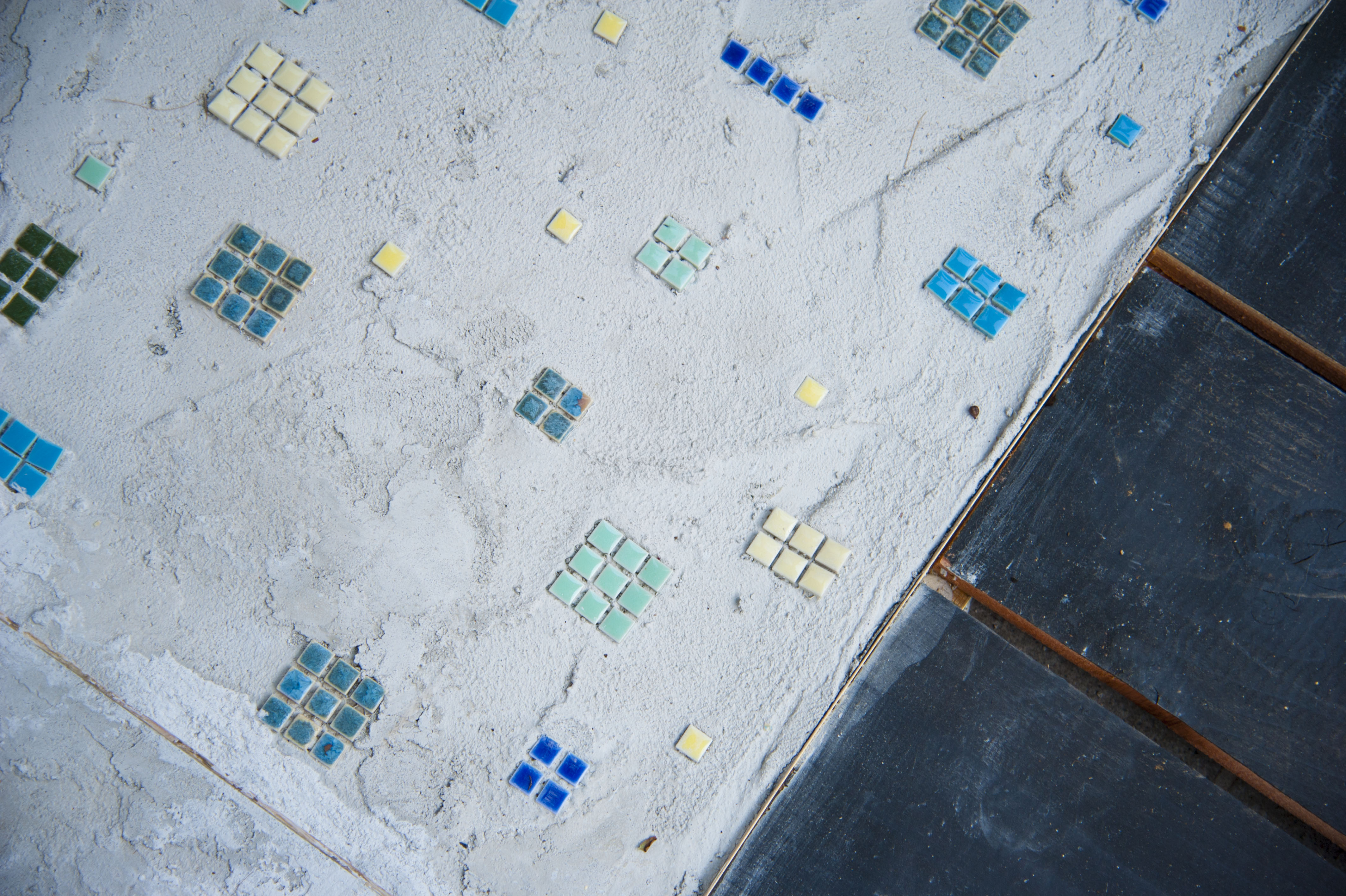 日本とイタリアを繋ぐ海の青。色の調合はお施主さんと共に現場で決定した。