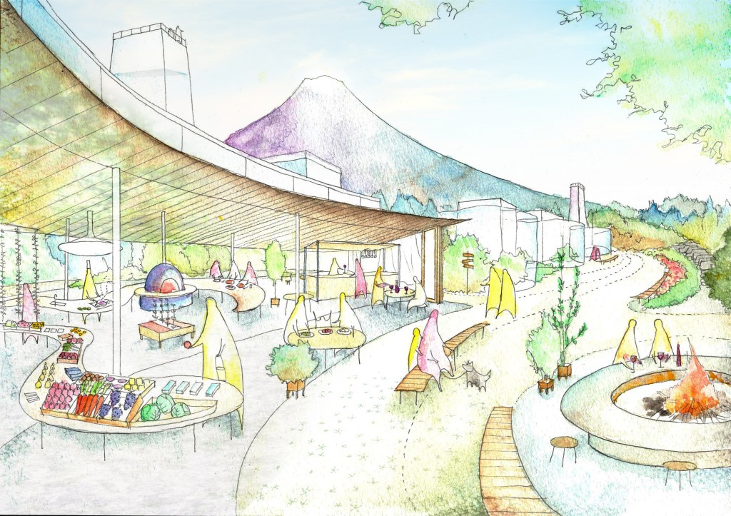 探索するスタートにもなり、帰る場所にもなる、森の中の“HOME”。 オープン時には扉を開いて面を広げ、皆の憩いの場をつくりだします。